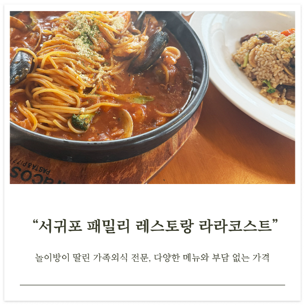 이곳 서귀포 라라코스트를 가신다면 파스타와 스테이크 류도 함께 드셔 보는 것도 좋을거 같아요. 예전 방문 시 스테이크, 파스타 맛있게 먹었던 기억이 있거든요. 아이들도 무척 좋아했고요.
