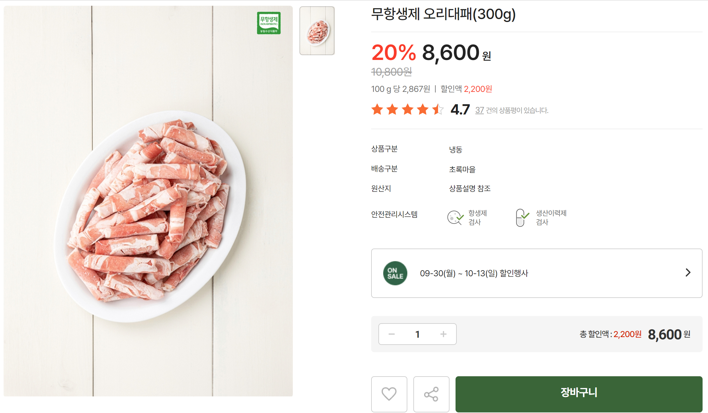 초록마을 무항생제 오리대패 (300g)