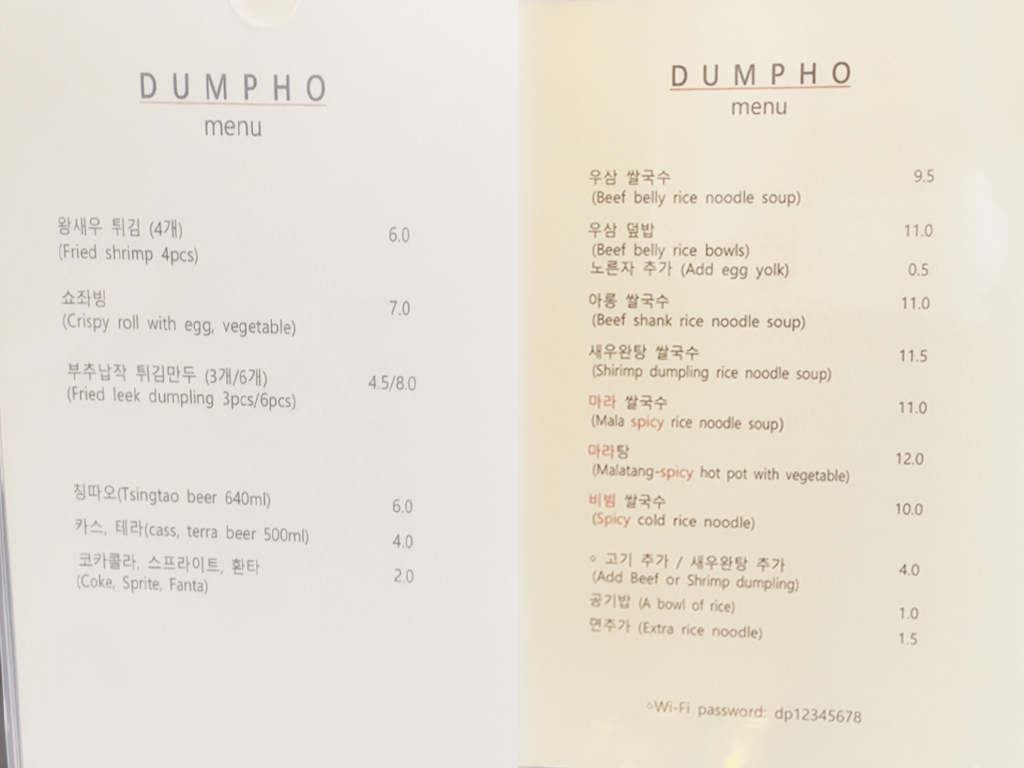 이곳 쌀국수 전문 덤포는 가격도 괜찮아요.