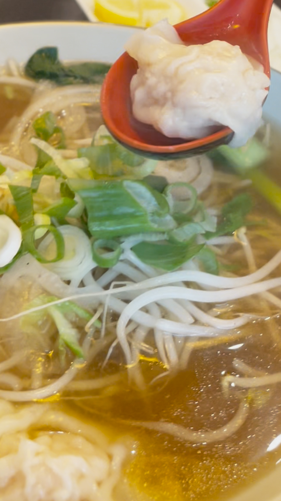실한 새우살이 씹히는 새우완탕이 맛있는 쌀국수,