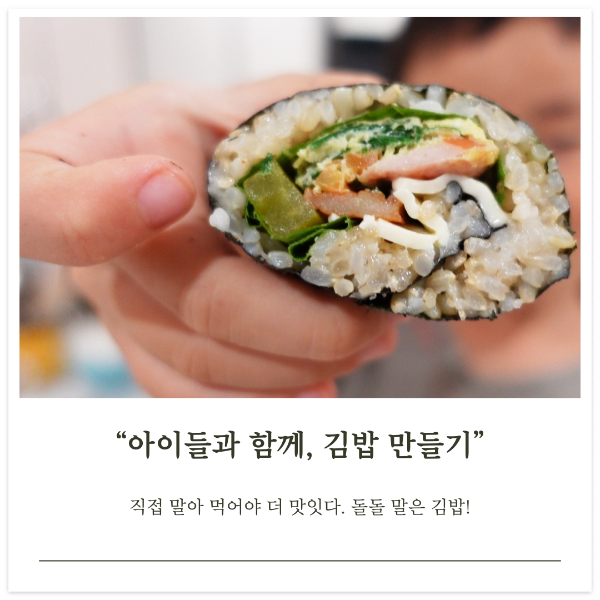 이번 김밥은 아이들이 만드는데 참여했다는데 의미가 있었고요.