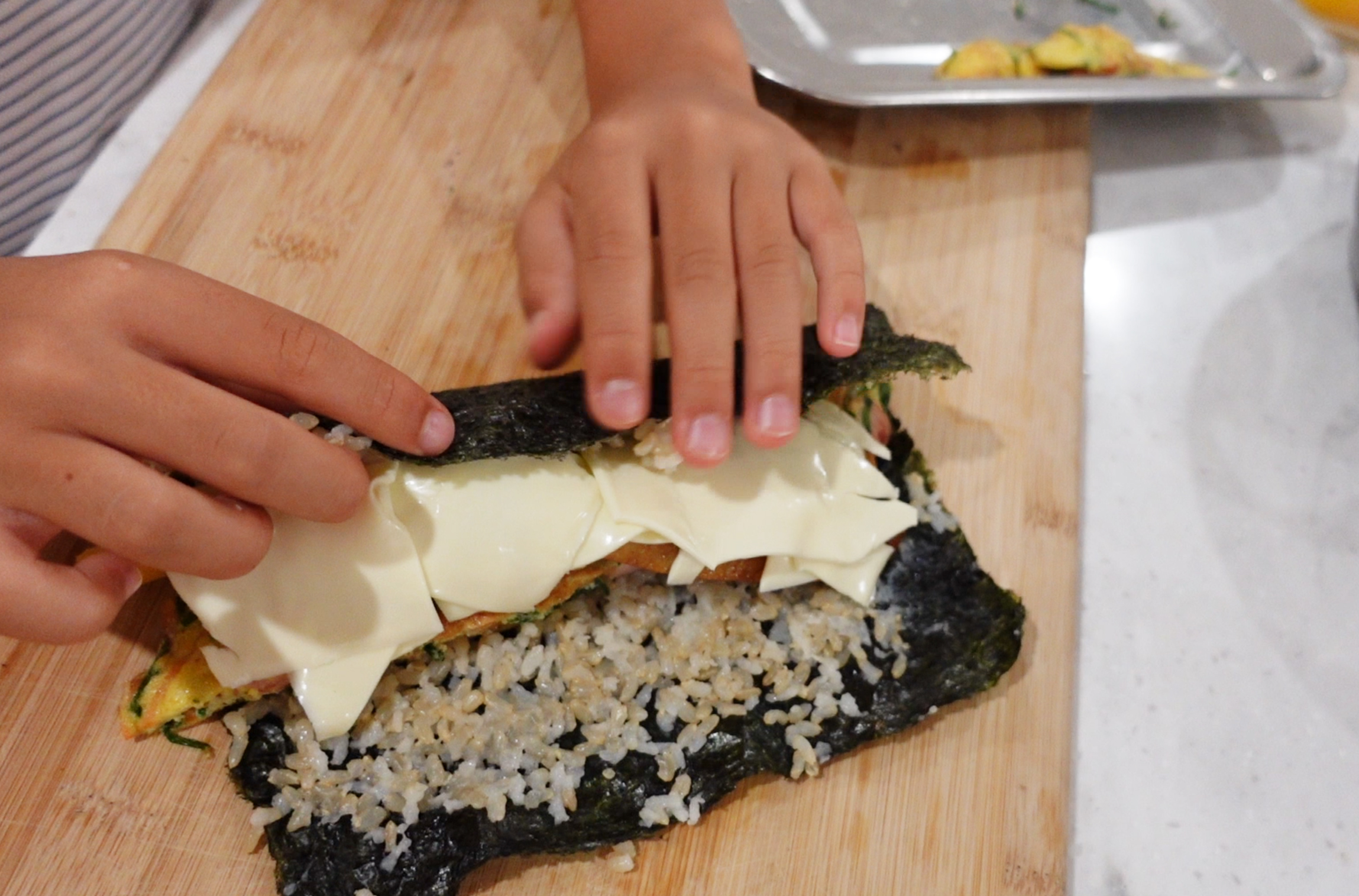 첫째는 치즈가 듬뿍 들어간 김밥을 만든다며