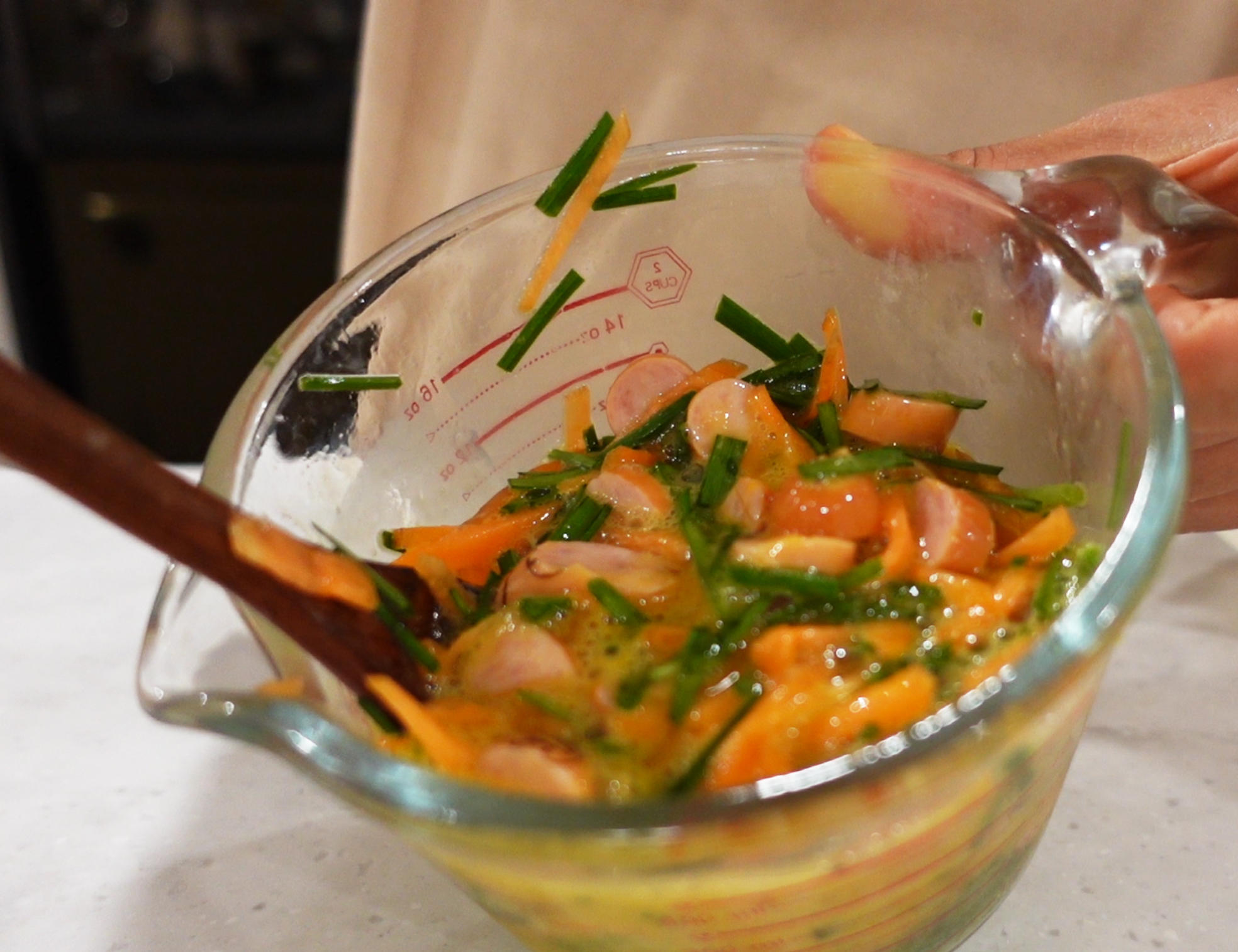 김밥 안에 들어갈 야채와 계란을 믹스해서