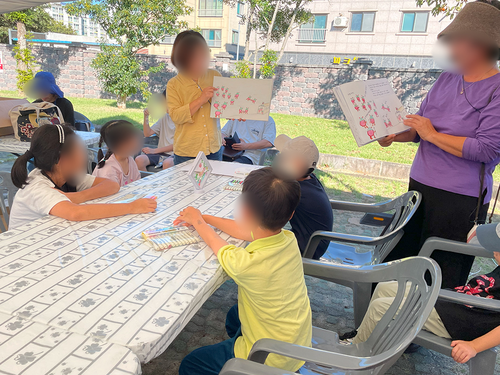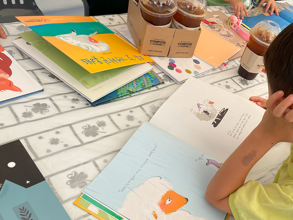 그림을 그려서 어떻게 책으로 만들었는지 알려주시고, 직접 쓰신 그림책을 재미있게 들려주셨어요.