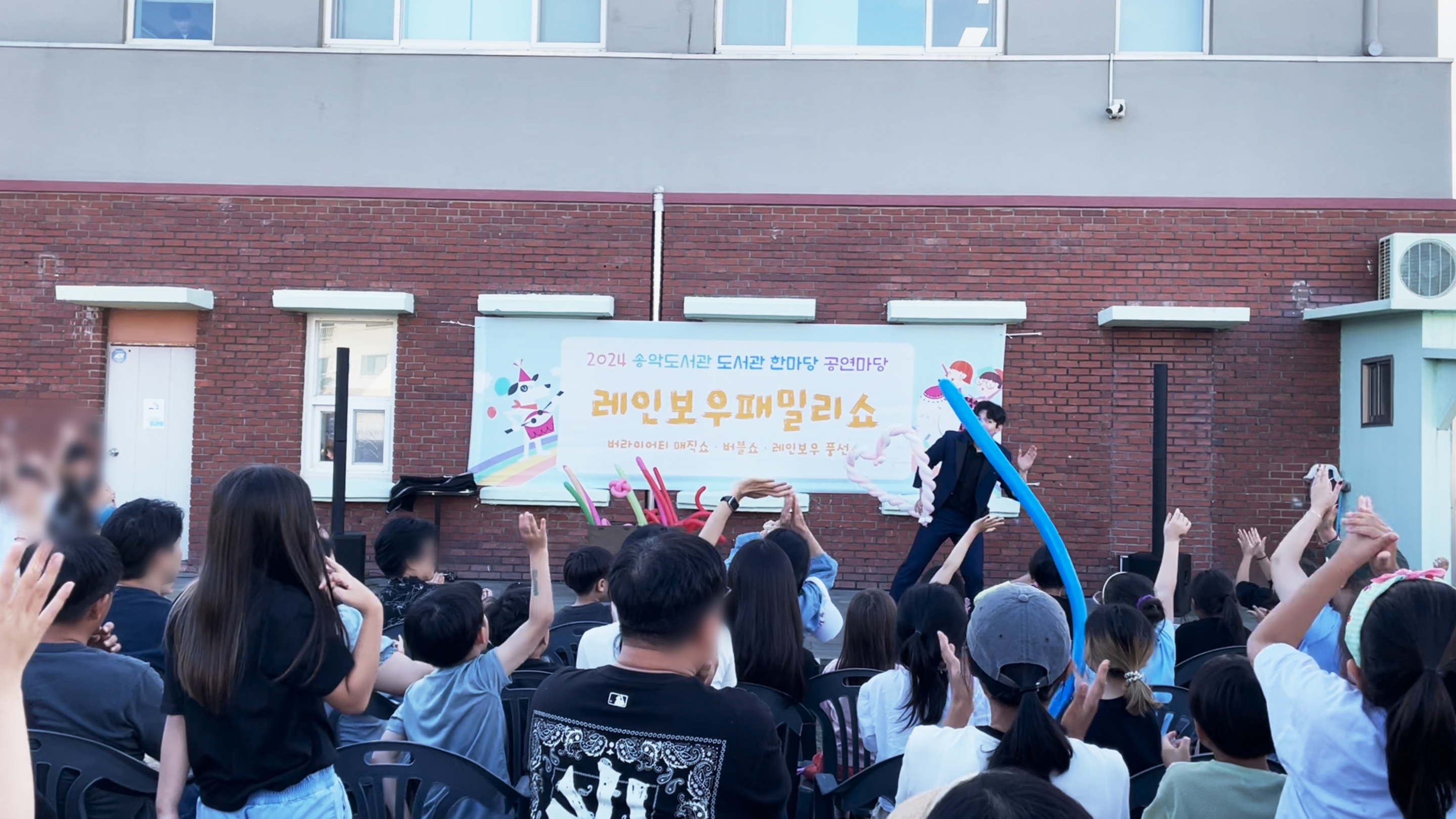 특히 마술 도구들, 풍선, 버블을 이용해서 하기 쉽지 않았을텐데 공연장이 아이들로 꽉 채워졌고, 어른들도 덩달아 신이 나 기대가 한 가득. 기대에 부응해 열정적으로 공연 해주셨어요!