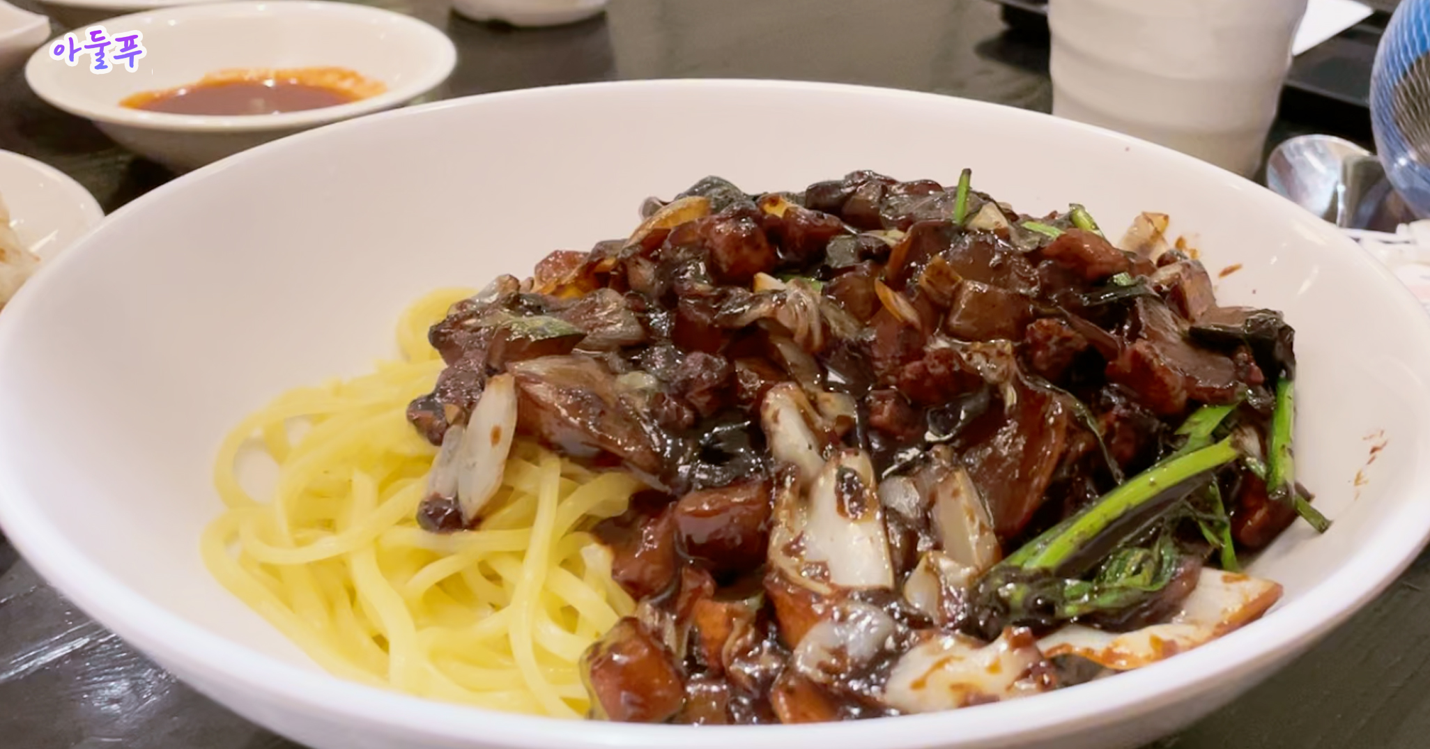 짜장이.... 간짜장 스타일로 재료들이 살아 있고 푸짐하게 들어갔어요. 역시 실망시키지 않는 백종원표 자장면.