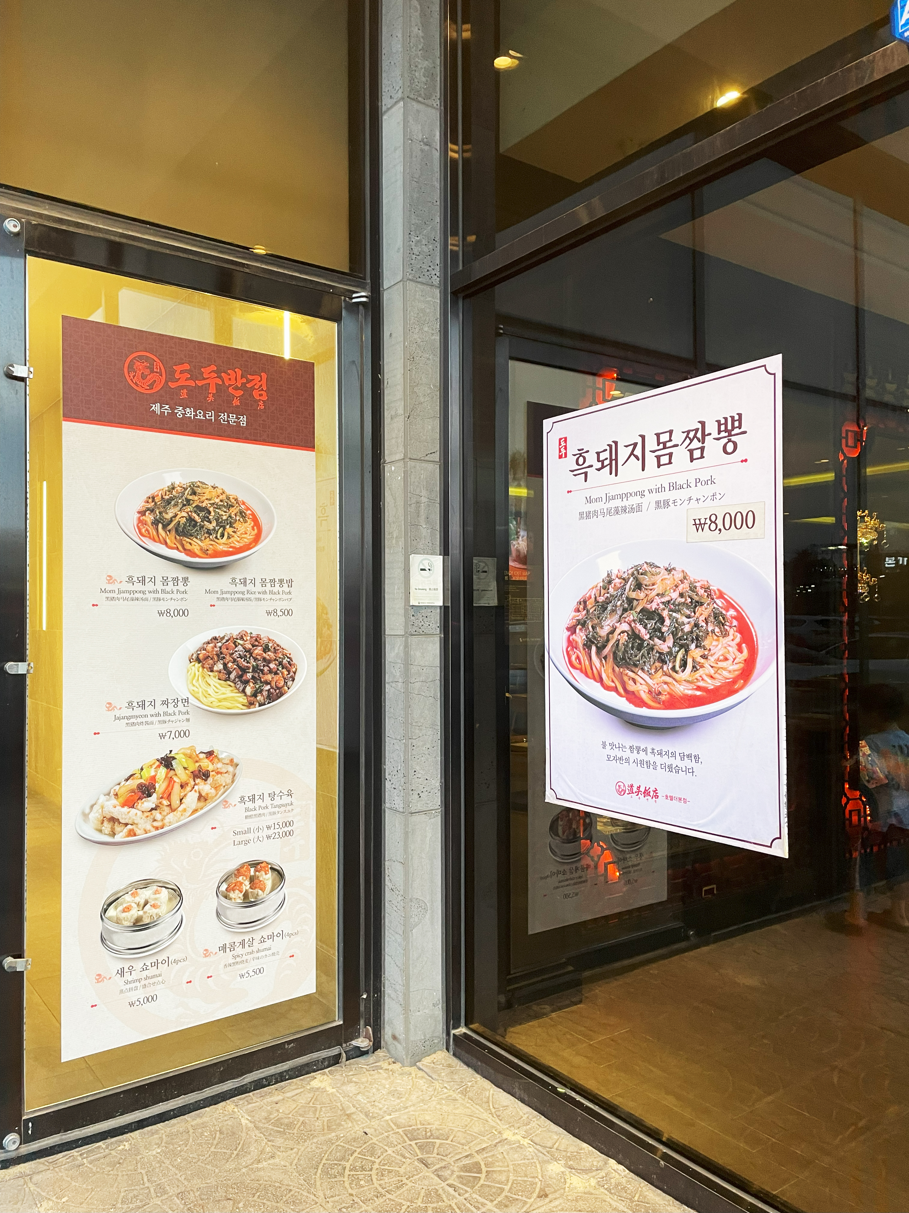 옆에 있는 돈가스로 유명한 '연돈' 웨이팅이 어마어마한 걸 보며 침만 삼키는 아들들을 위로하고, 때마침 허기진 배를 채우고자 '더본호텔 도두반점'으로 들어갔어요~!