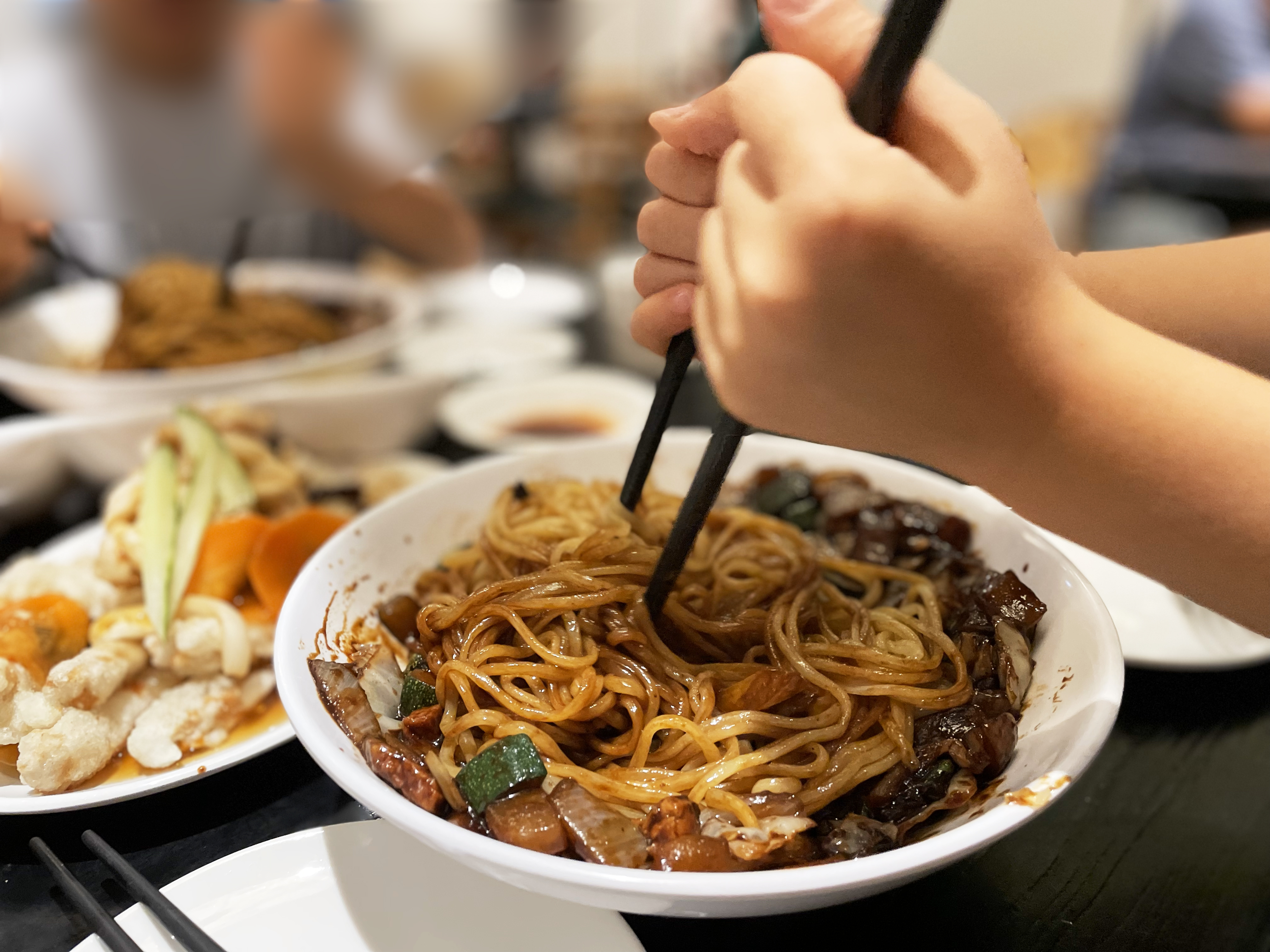 동네 자장면 집에서 간짜장을 시켜야 나오는 비주얼이 이곳에서는 기본 자장으로 나오는데 불향이 솔솔 나면서 아이들은 참지 못 하고 보자 마자 젓가락 권법으로 막 휘젓습니다.