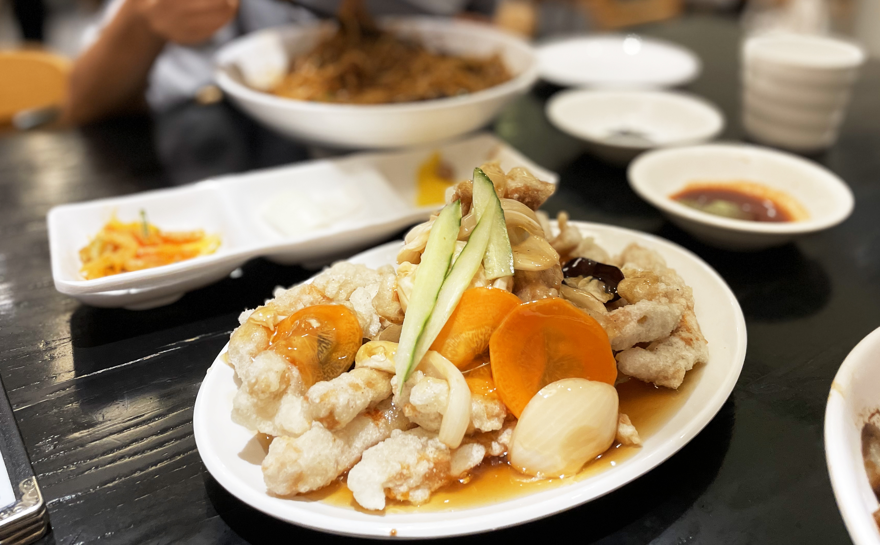 흑돼지탕수육은 부먹으로 나오는데 바삭한 고기튀김을 찍먹으로 먹는 제 취향에 좀 아쉽긴 했지만 흑돼지를 써서 만들었다는 점에서 높이 평가하고, 일반적으로 먹던 딱 그 탕수육 맛, 그 친근한 맛이 납니다. 야채도 모양과 식감이 살아 있어 좋았고요.