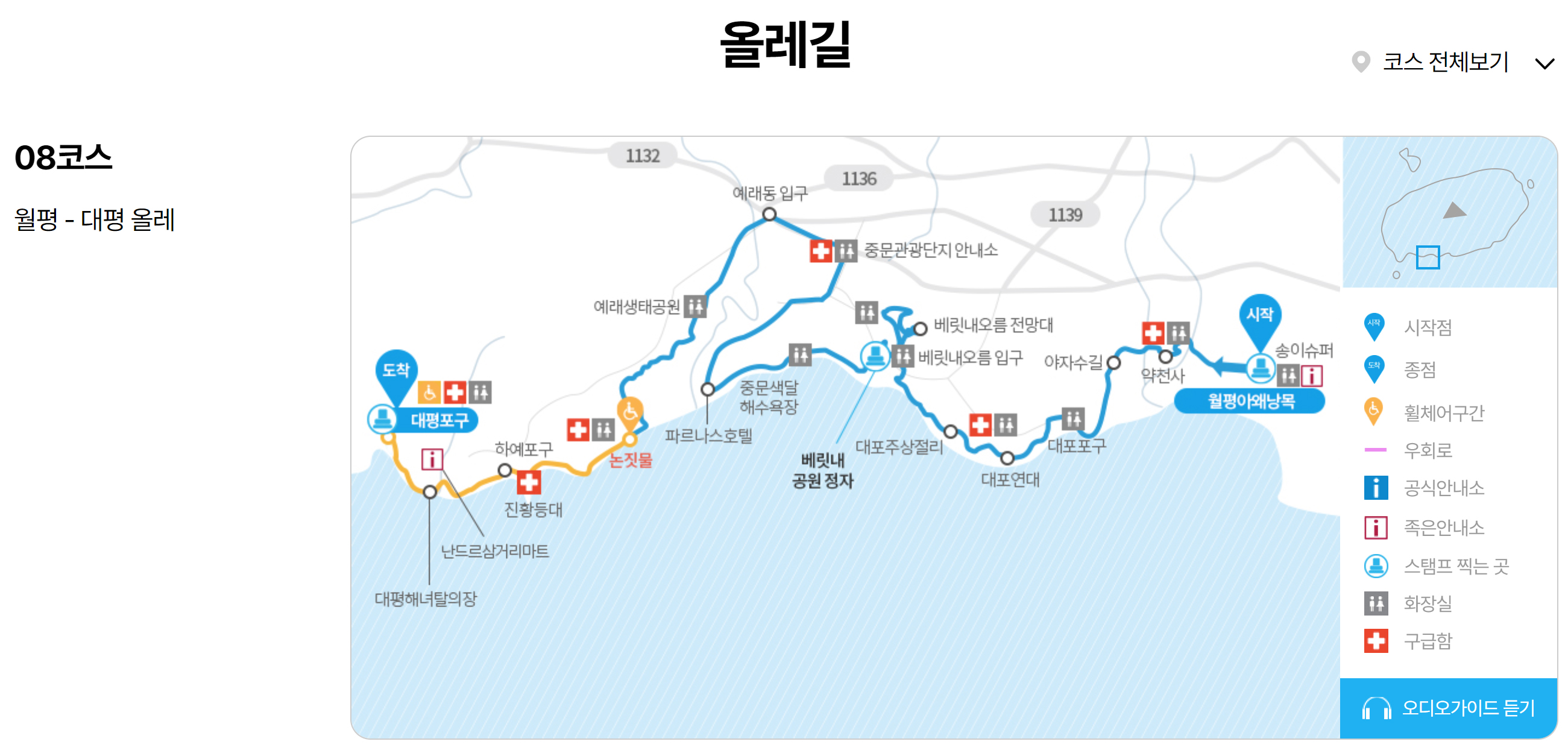 8코스 다 걸으려면 약 18.2km, 약 5~6시간 걸려요,