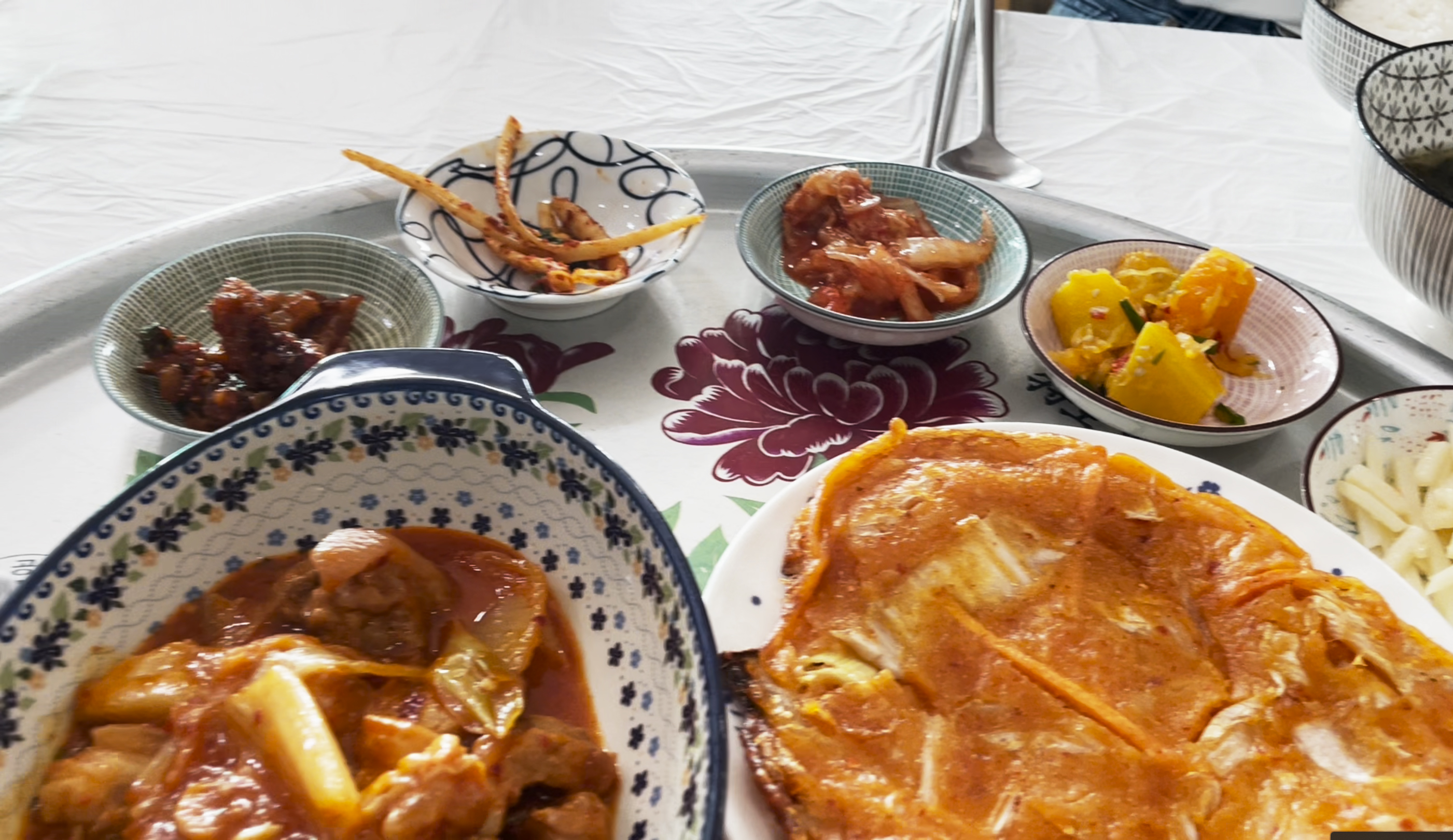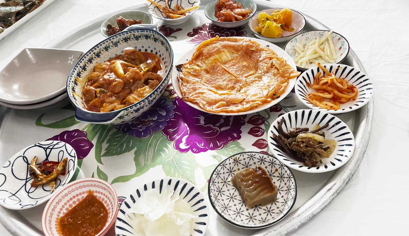 고사리무침, 무생채. 감자볶음, 단호박조림, 멸치볶음, 도라지나물, 코다리조림 등등