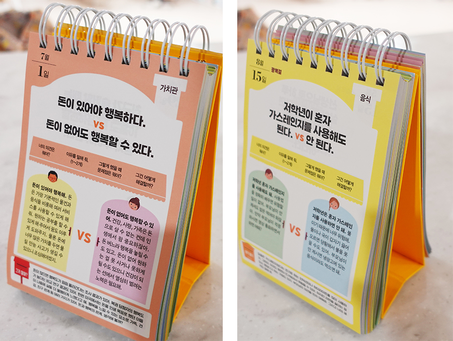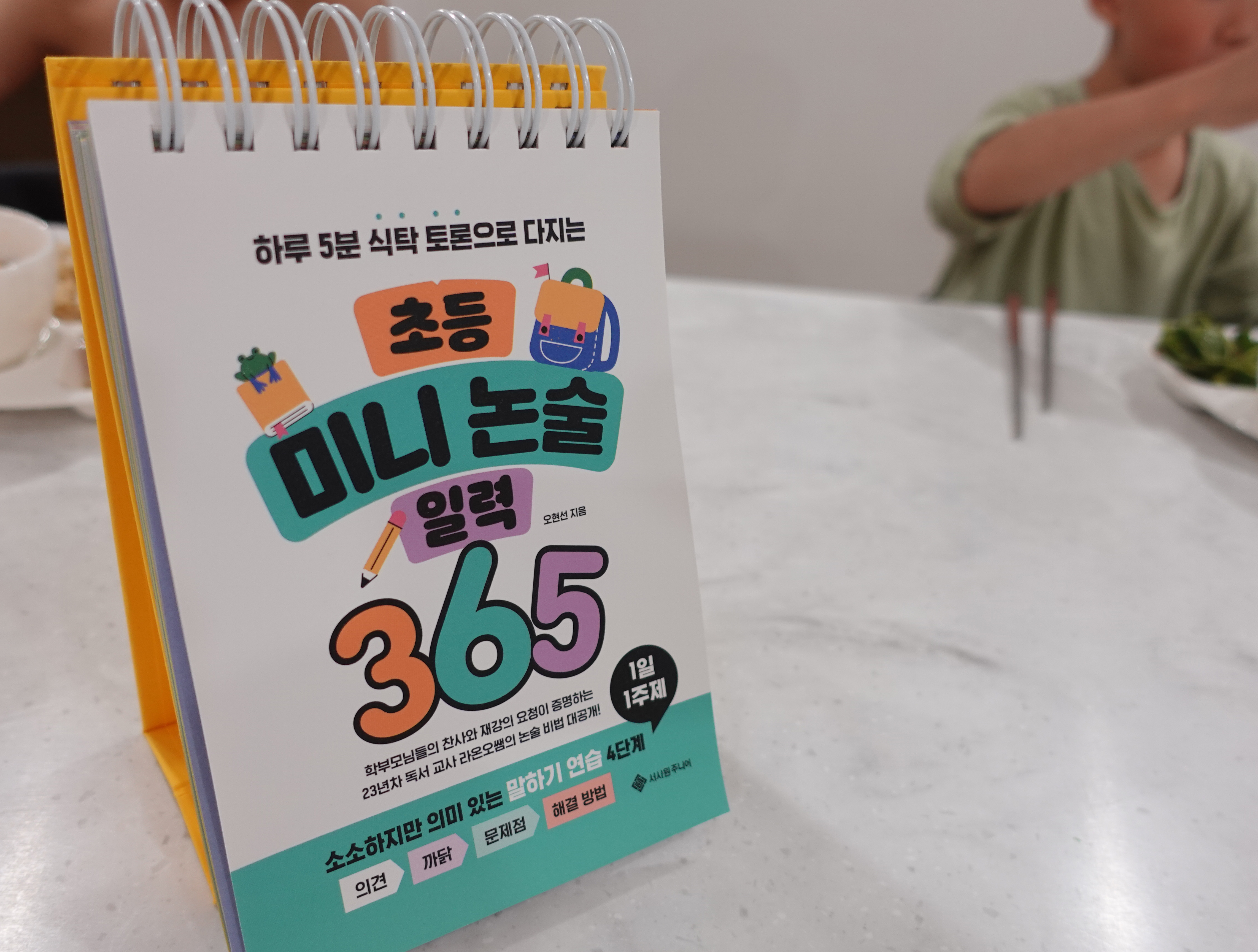 서점에서 보고 고른 '초등 미니논술 일력'을 참고하고 있어요.