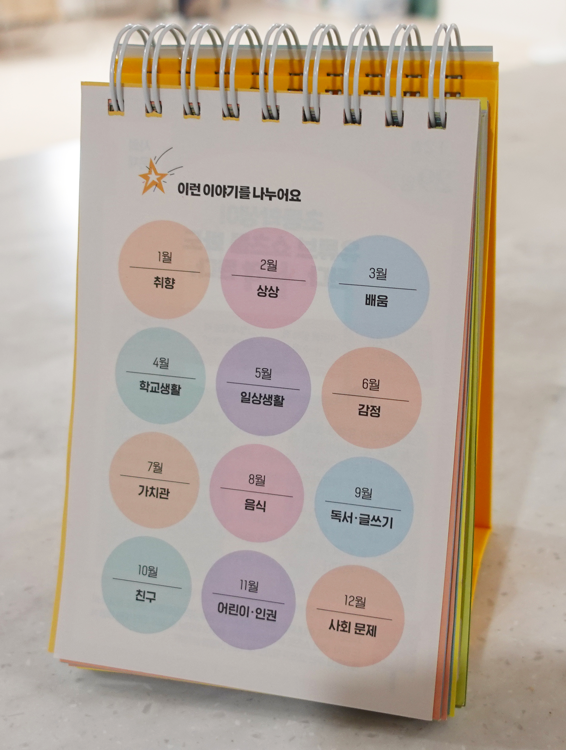 월 별 취향, 상상, 배움, 학교생활, 일상생활, 감정 등을 다뤄요.