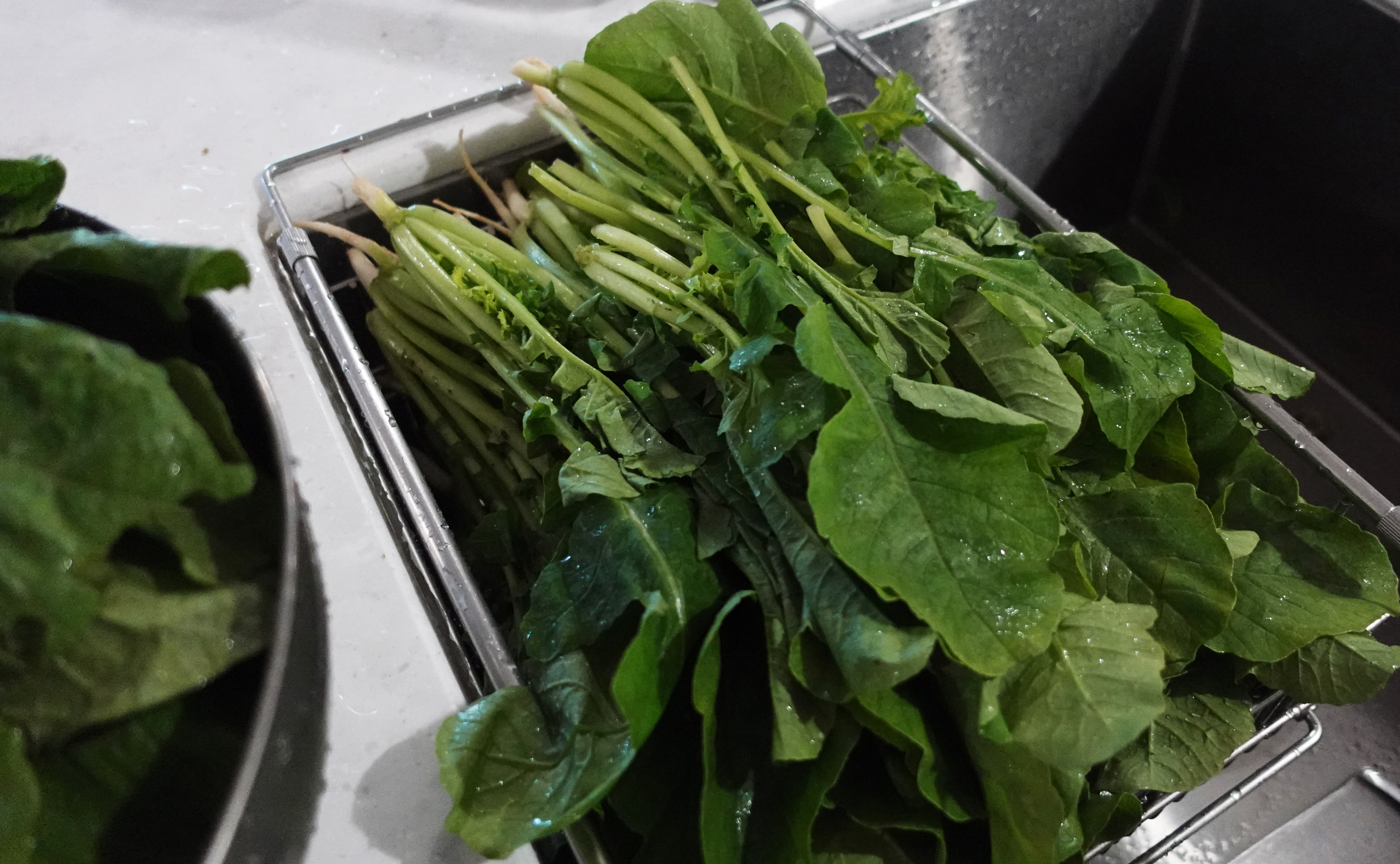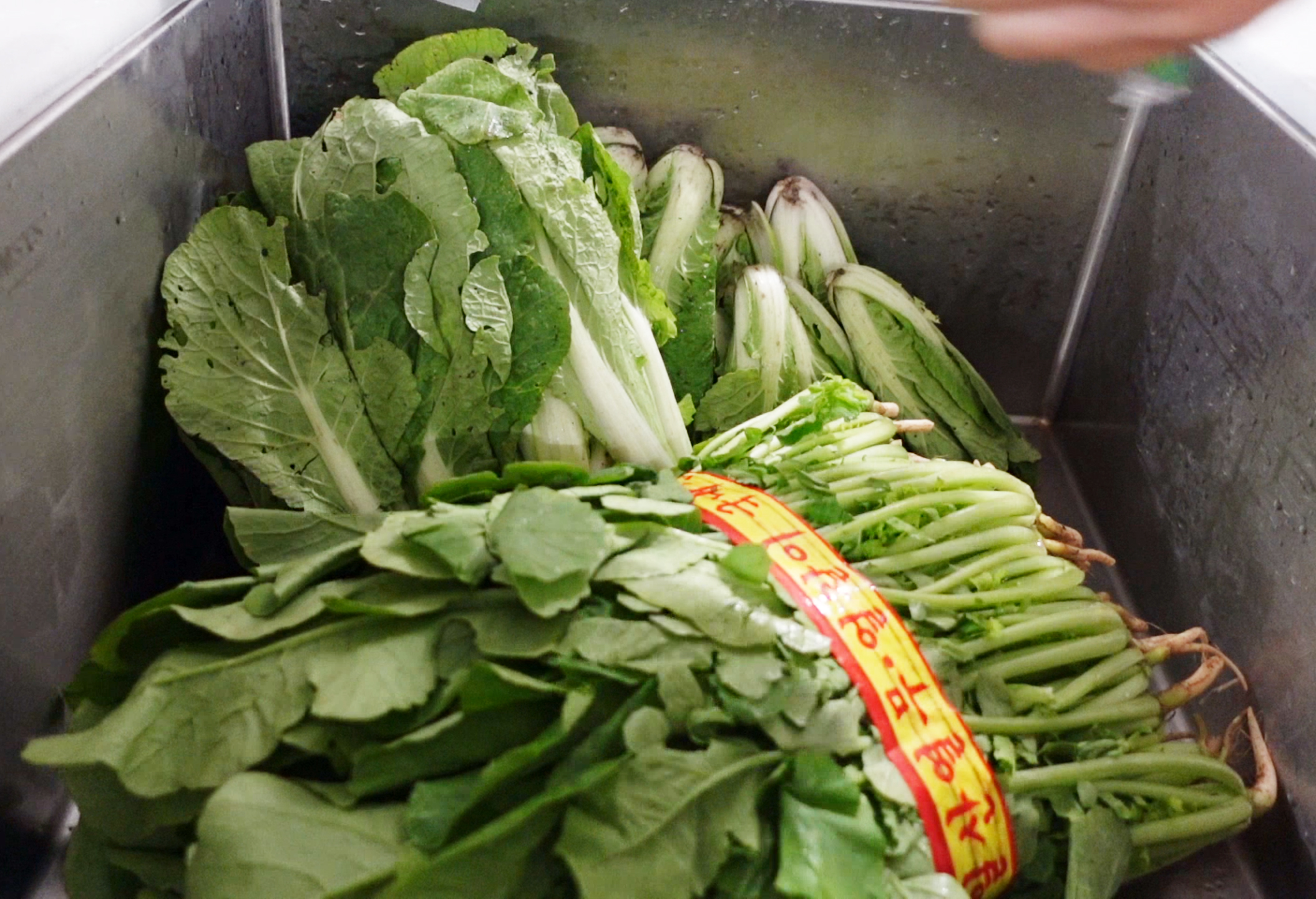 로컬푸드에서 산 얼갈이 추가하고 물에 세척 들어갑니다.