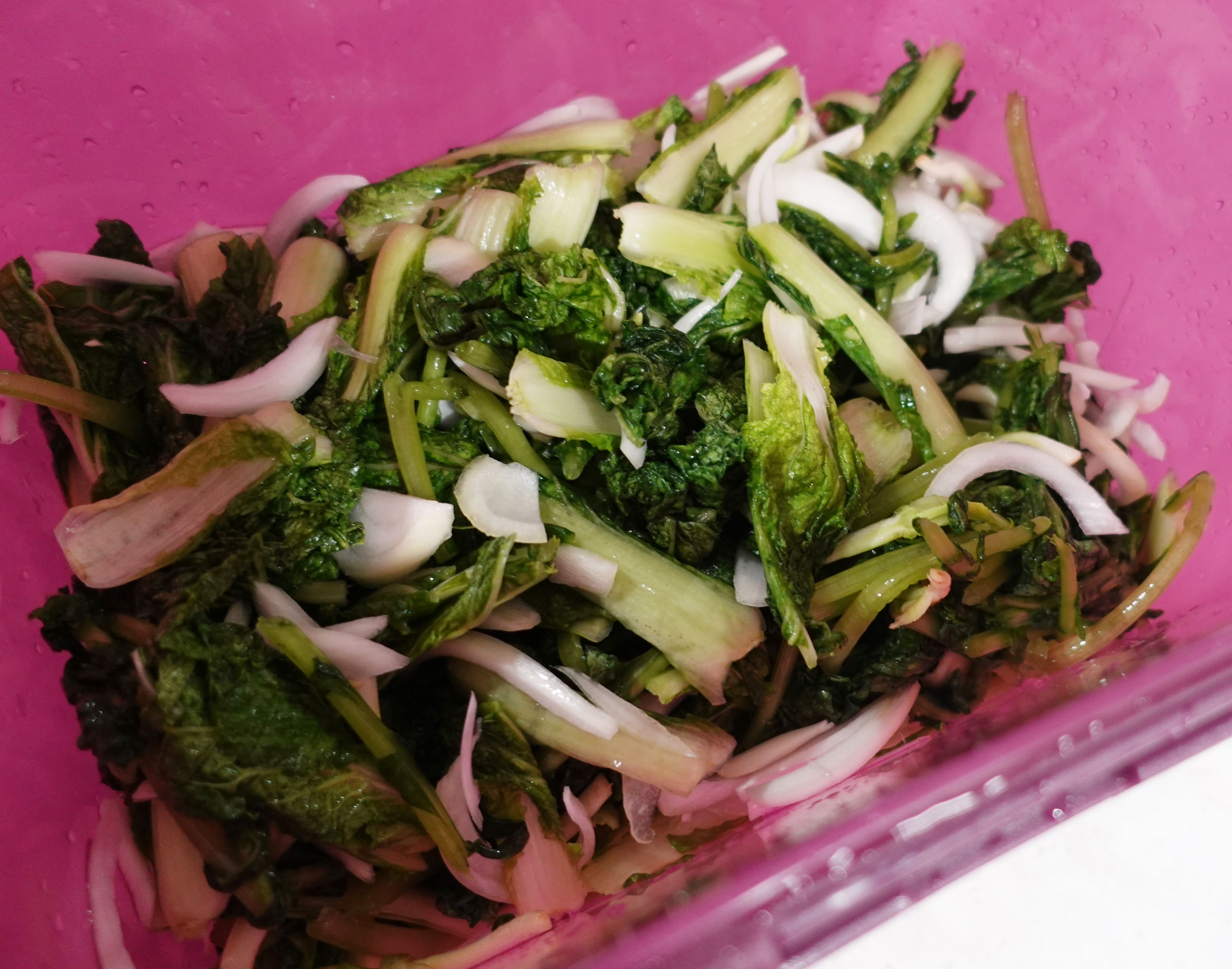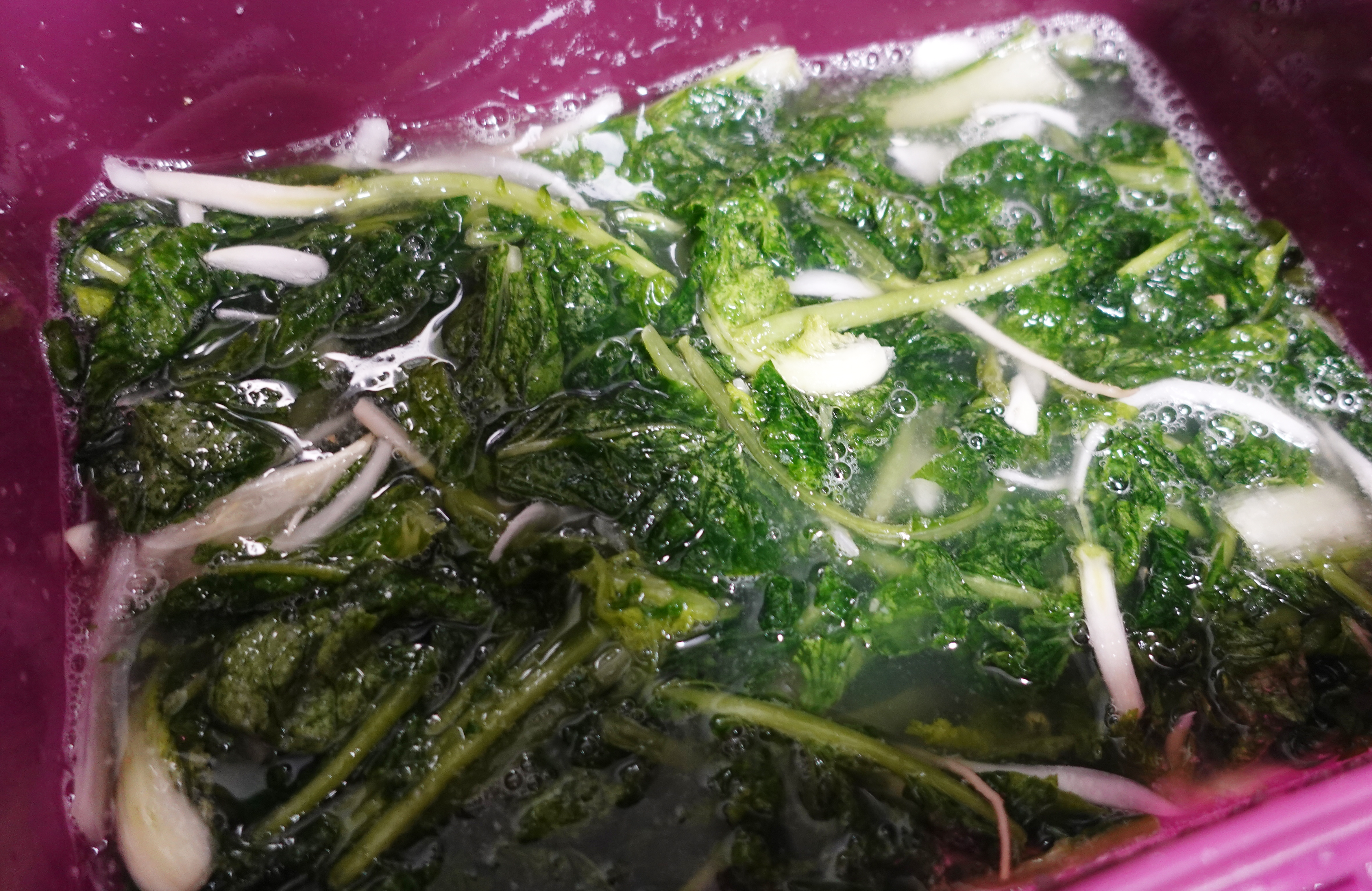 뻣뻣했던 열무들이 소금에 절여져 부드러워 졌어요.