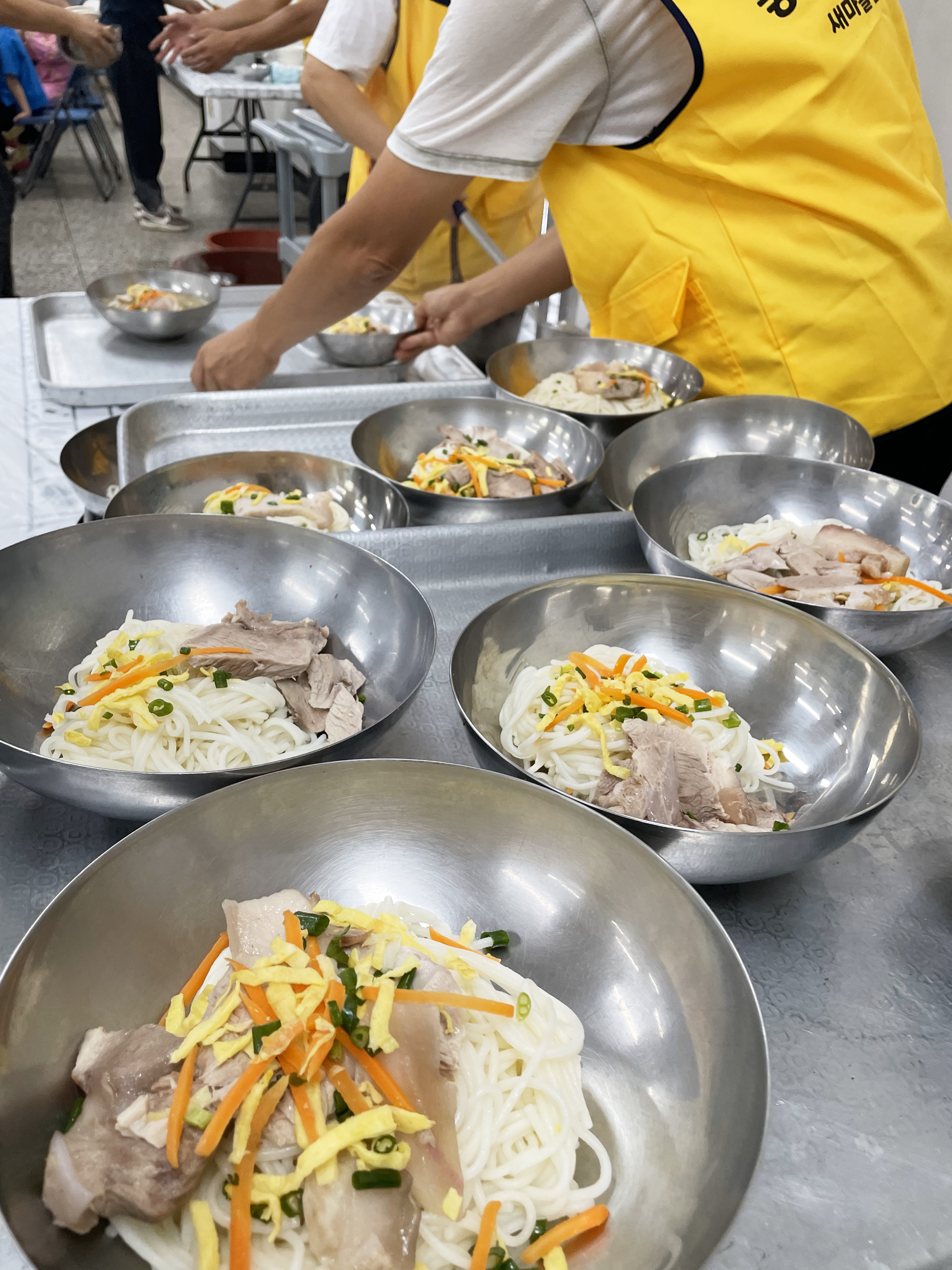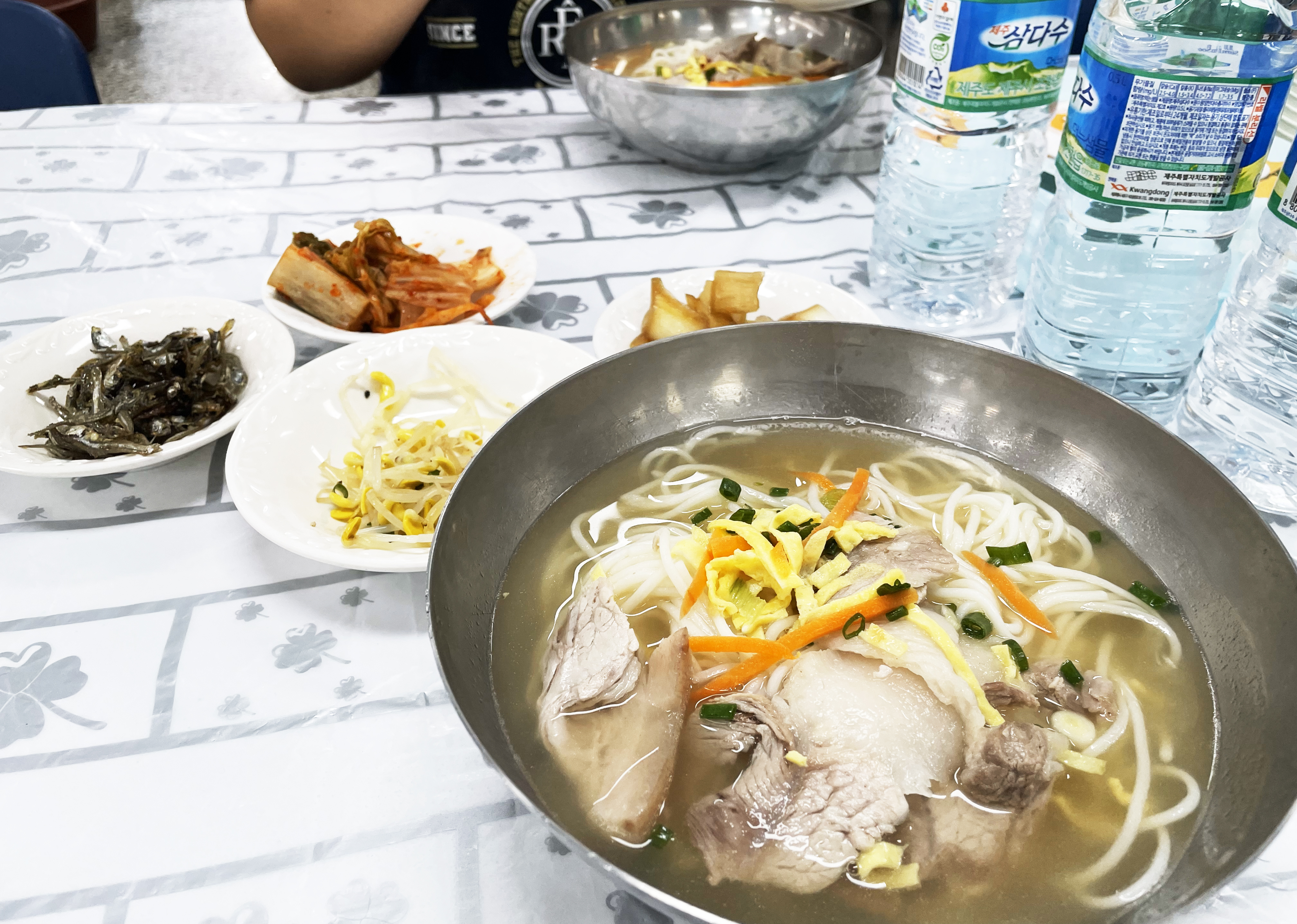 제주 잔치에 빠지지 않는 고기 국수, 무료로 제공.