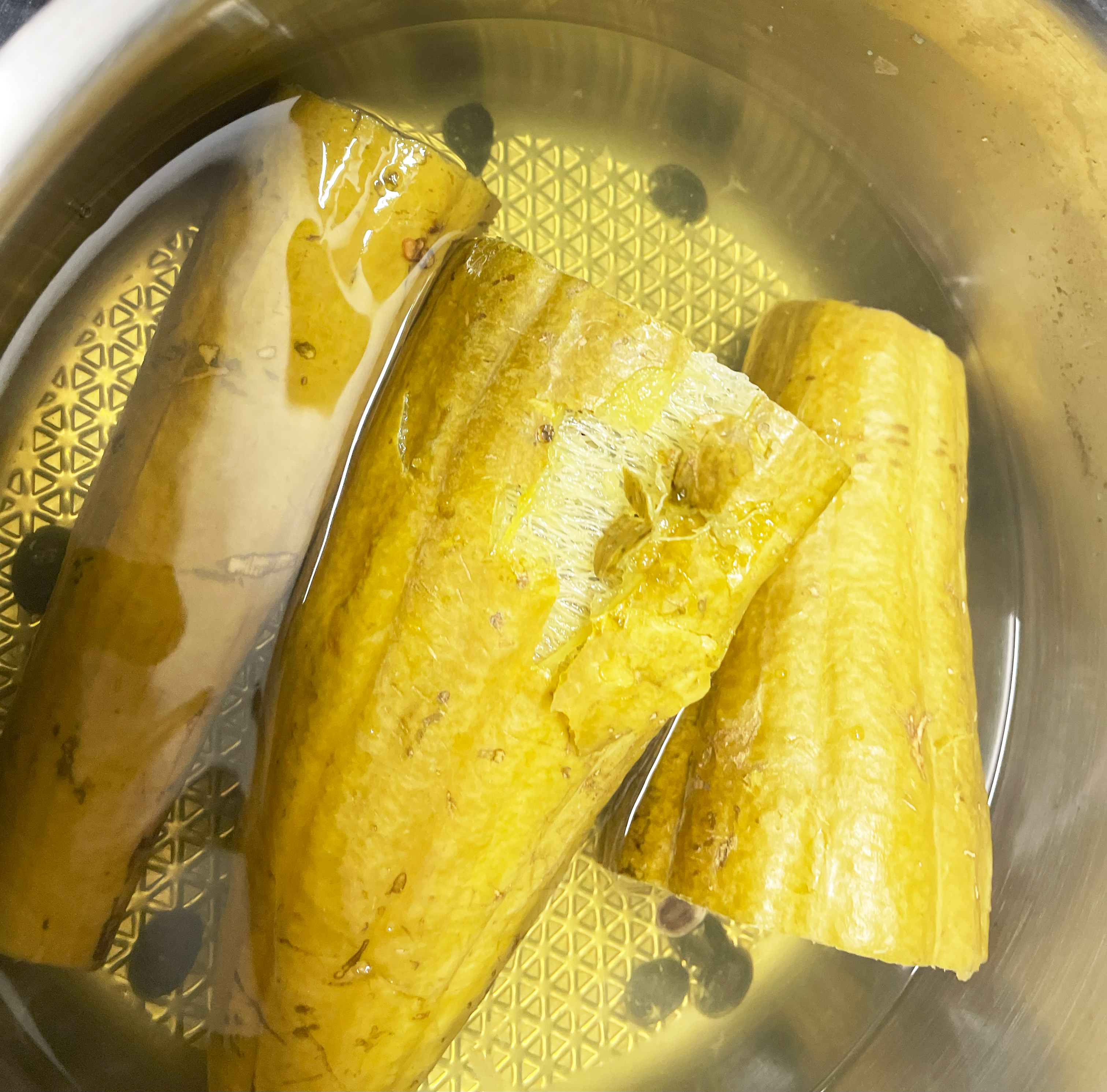 끓이다 보면 노랗게 변하거든요. 집게로 껍질을 분리하려고 할 때 껍질이 부드럽게 잘 떨어지면, 알맞게 삶아진 거라 보면 됩니다. 저는 끓은 뒤 불 끄고 바로 손질하지 않고 그대로 뒀어요. 씨가 안에 까지 있는데 빼기 쉽지 않아, 말린 다음에 씨 분리 작업을 해주기로 했고요.