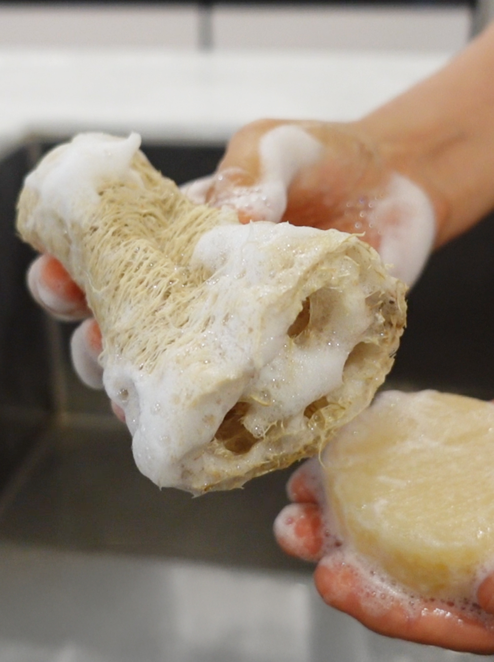 제로웨이스트 실천으로, 일회용 플라스틱 수세미 대신 천연 수세미를 사용하면 플라스틱 쓰레기 배출량이 줄어들고요. 천연 수세미는 사용 후 자연에서 분해되어 쓰레기처리에 대한 문제를 해결해 주죠. 화학 성분 노출을 줄일 수 있어 건강에도 좋고요!
