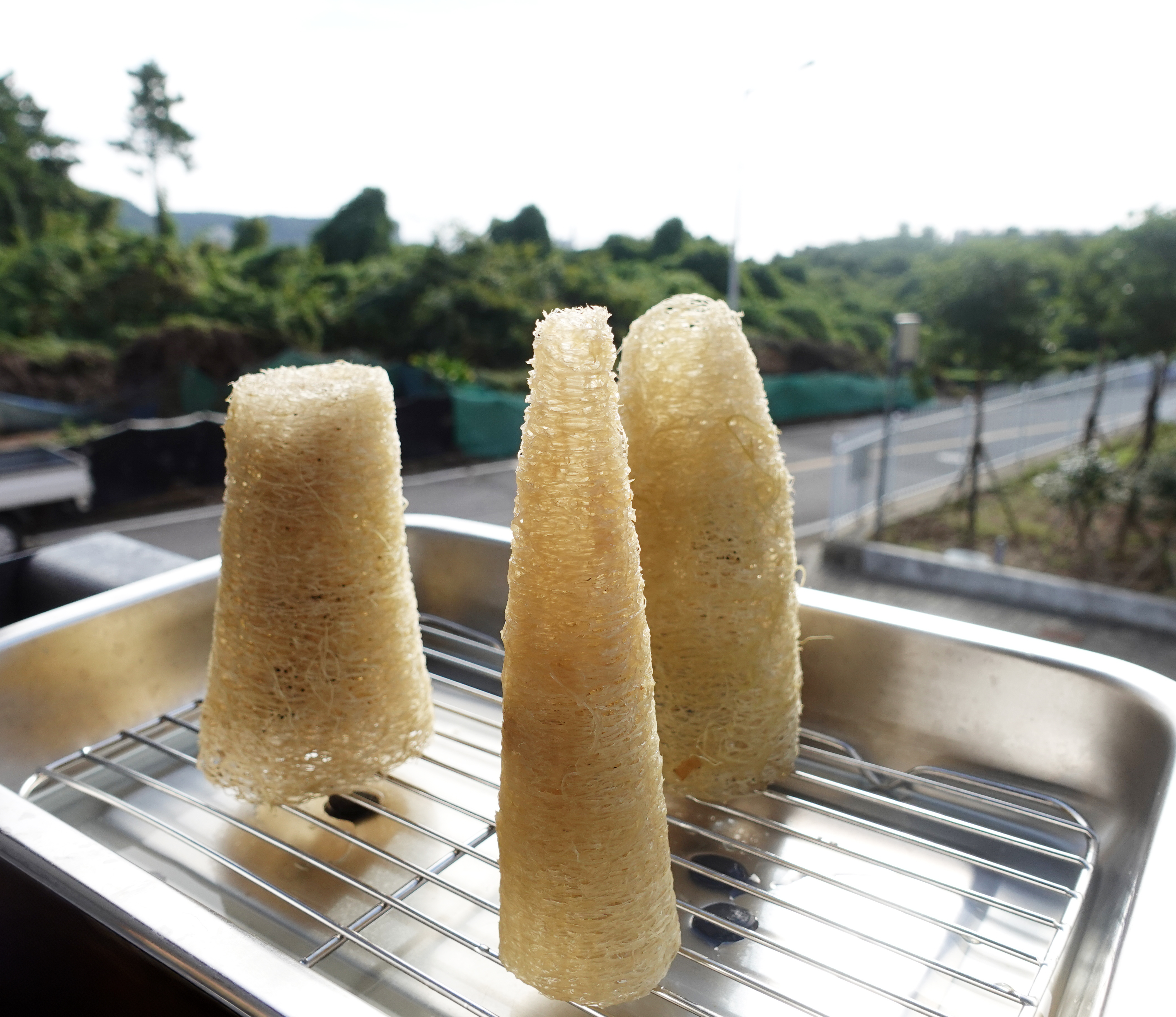 깨끗하게 삶은 수세미를 물기를 짜고, 통풍이 잘 되는 곳에 충분히 말려주어요. 잘 말린 천연 수세미는 단단하고 탄력 있는 상태가 되지요~