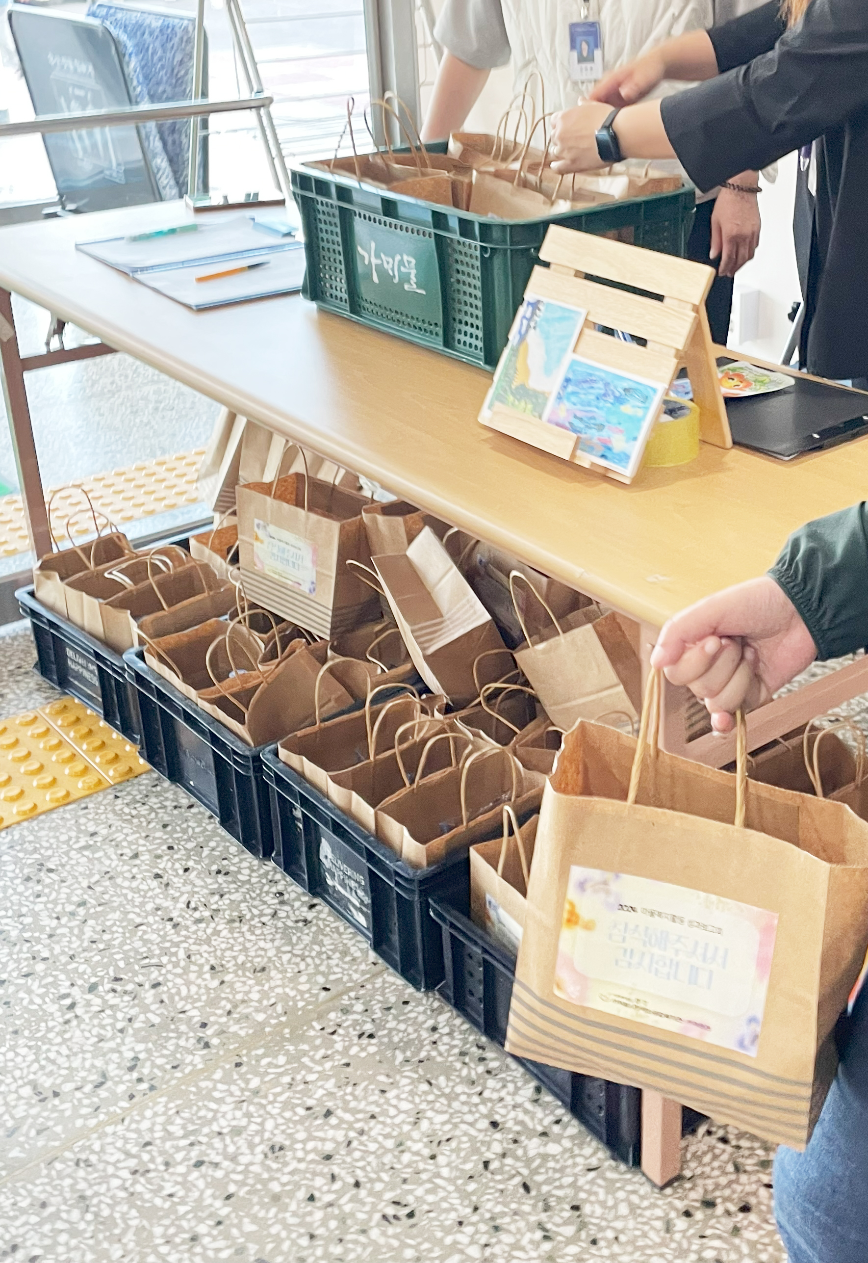 서부분관 복지가게 미쁜제과에서 단팥빵과 가뫼물에서 감귤주스를 후원해 주셔서 행사에 풍성함을 더해주셨네요.