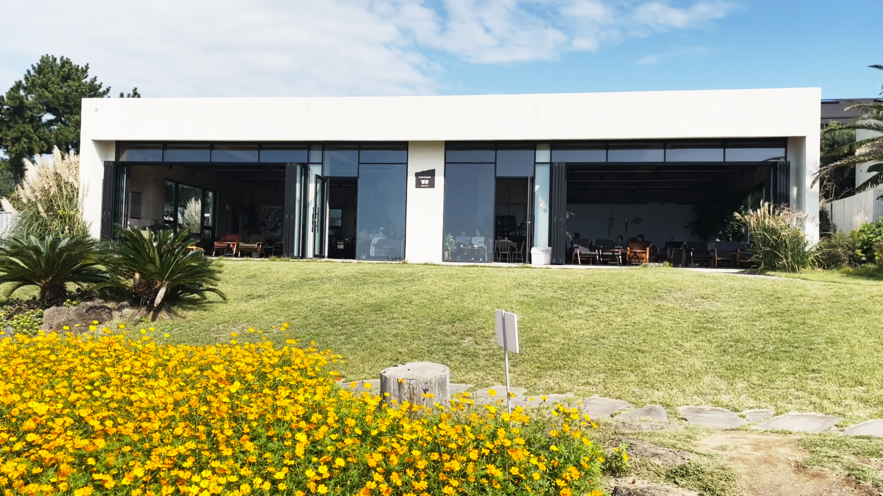 창가 자리에서 바라보는 제주의 푸른 바다는 그 자체로 한 폭의 그림 같아요. 바다와 함께 인생 사진을 남기고 싶다면, 자연광이 예쁘게 드는 오전 시간대나 해 질 녘 시간에 방문하는 걸 추천드려요.