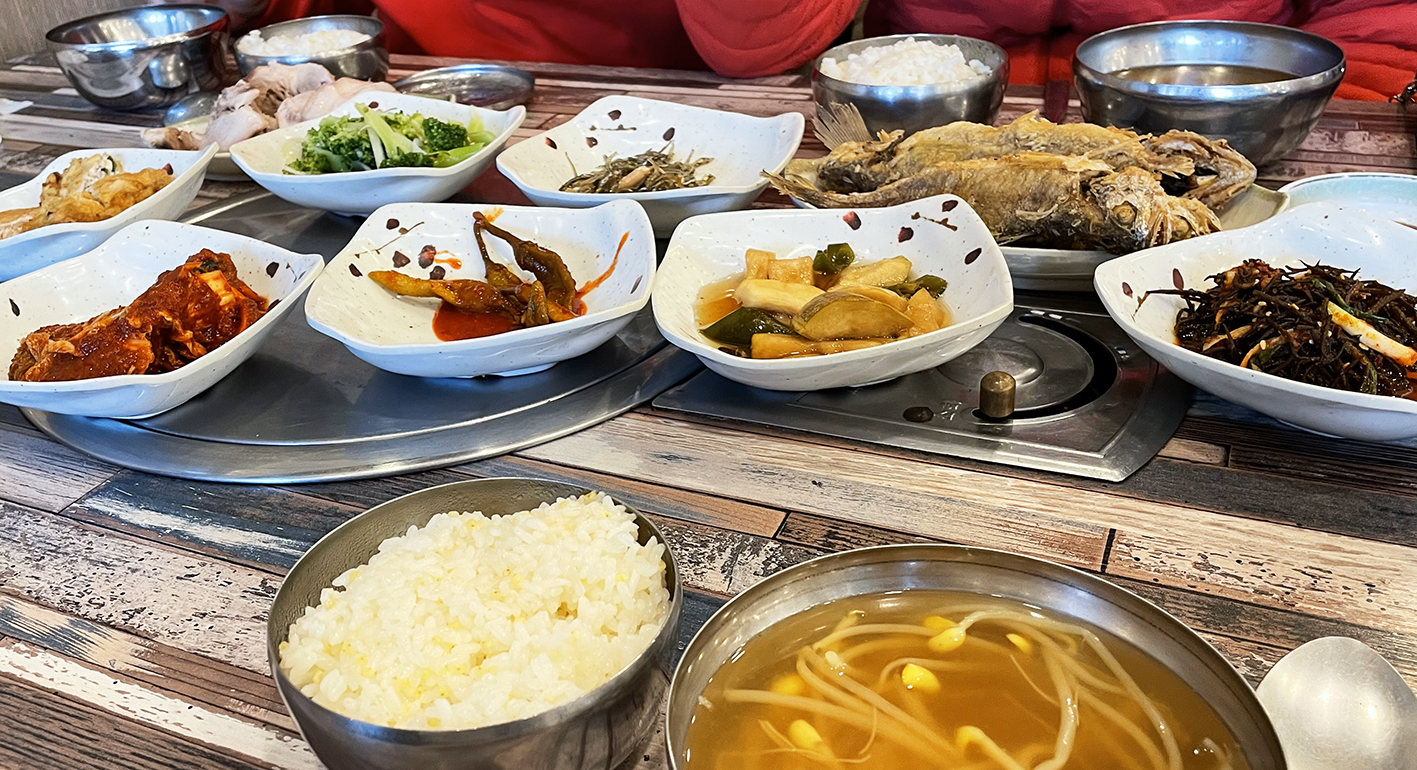 생선, 고기, 맛있고 건강한 반찬 가득,