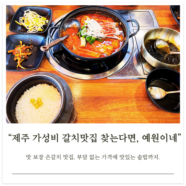 아쉬운 점은 식기는 플라스틱으로 쓰는 걸 선호하지 않아서 밥이나 국 용기 플라스틱보다는 스텐으로 바꾸면 어떨까 싶어요. 반찬들이 매운 음식들이 많아서 부드럽고 순한 반찬들이면 매콤한 요리들과 잘 어울리겠다 싶더라고요. 그럼에도 돌솥밥과 갈치조림이 워낙 맛있어서 가성비 좋은 제주 갈치조림 맛집을 찾는다면 이곳을 추천하고 싶네요!