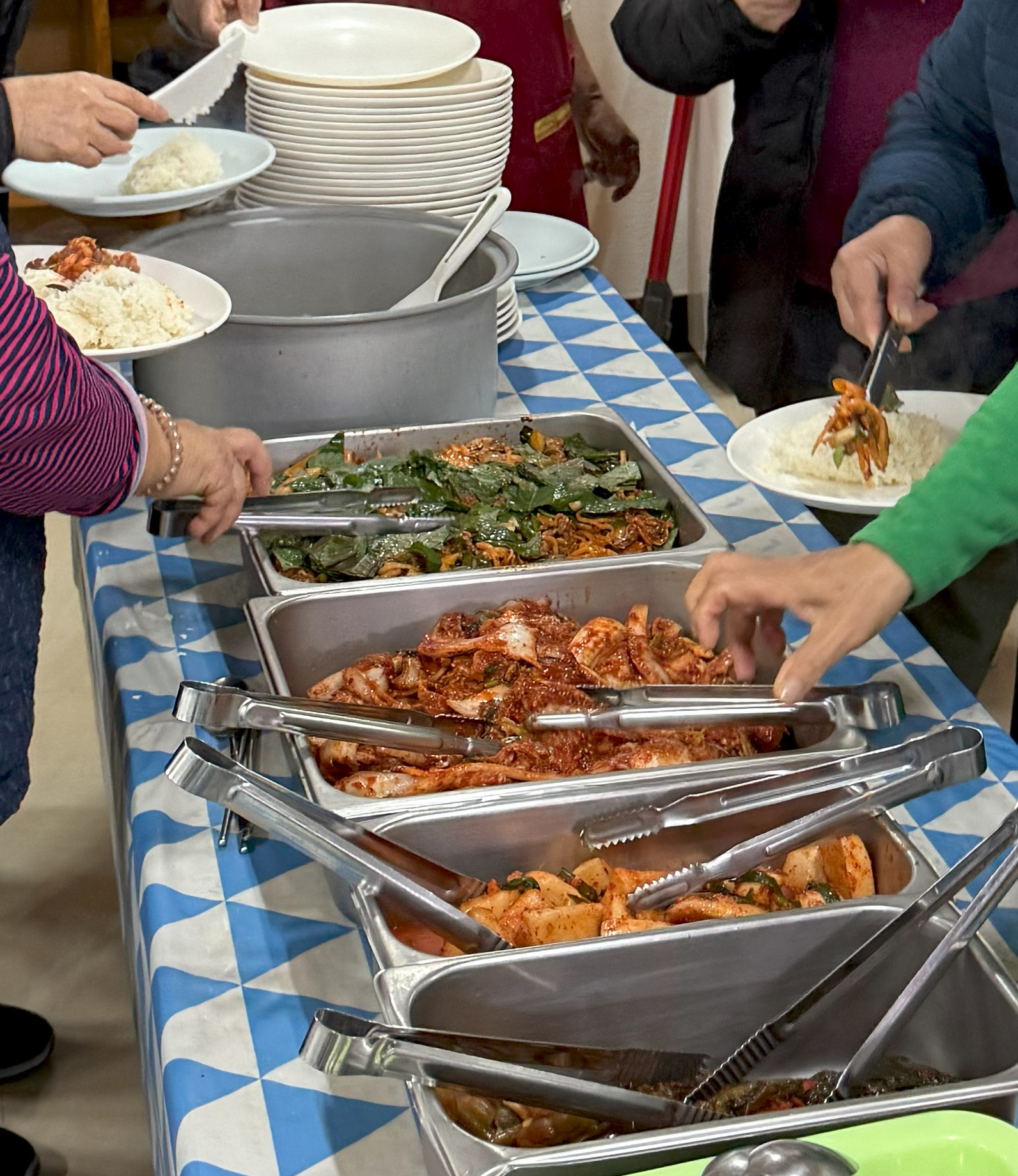 아이들 아침 식사 준비하고 부랴 부랴 달려간터라 아침 식사도 못 하고 갔거든요. 공복에 김장 노동까지 더하니 허기침이 절정에 달했어요. 그럼에도 끝을 향해 으쌰 으쌰. 나이 드신 분들도 참고하시는데 참여자 중 어린 나이에 속한 저는 아픈 내색 하기 없기~ 저는 두 시간을 했나 봐요.